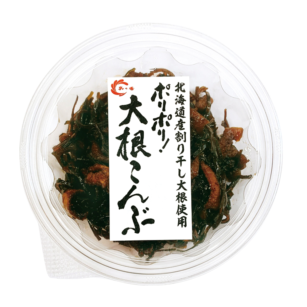 | 原材料名 | 割干大根(北海道産)、砂糖、醤油、還元水あめ、昆布、たんぱく加水分解物、発酵調味料、醸造酢、食塩、かつおぶしエキス、かつおぶし粉末、寒天、唐辛子/調味料(アミノ酸等)、カラメル色素、酸味料、保存料(ソルビン酸K)、増粘多糖類、酸化防止剤(ビタミンE)、ビタミンB1、甘味料(甘草)、(一部に小麦・大豆を含む) |