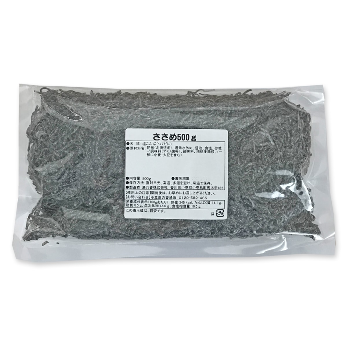 | 原材料名 | 昆布(北海道産)、還元水あめ、醤油、食塩、砂糖、、調味料(アミノ酸等)、酸味料、増粘多糖類、(原材料の一部に小麦・大豆を含む) |