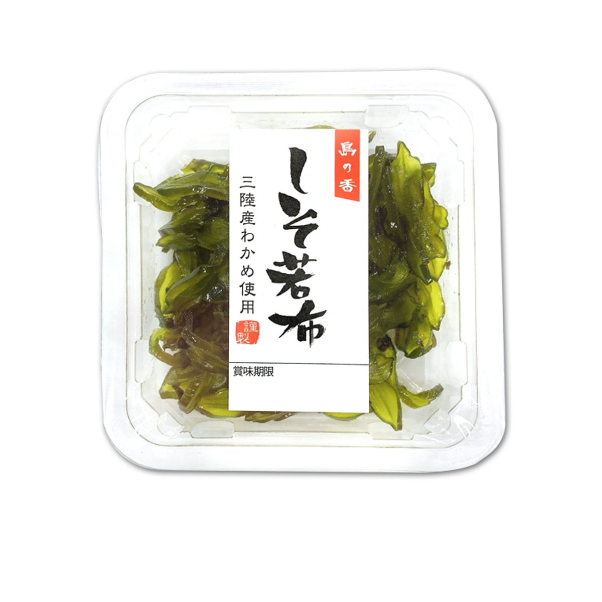 | 原材料名 | 茎わかめ(国産)、醤油、砂糖、還元水あめ、しその実、発酵調味料/調味料(アミノ酸等)、保存料(ソルビン酸K)、増粘多糖類、香料、着色料(黄4、青1)、(一部に小麦・大豆を含む) |