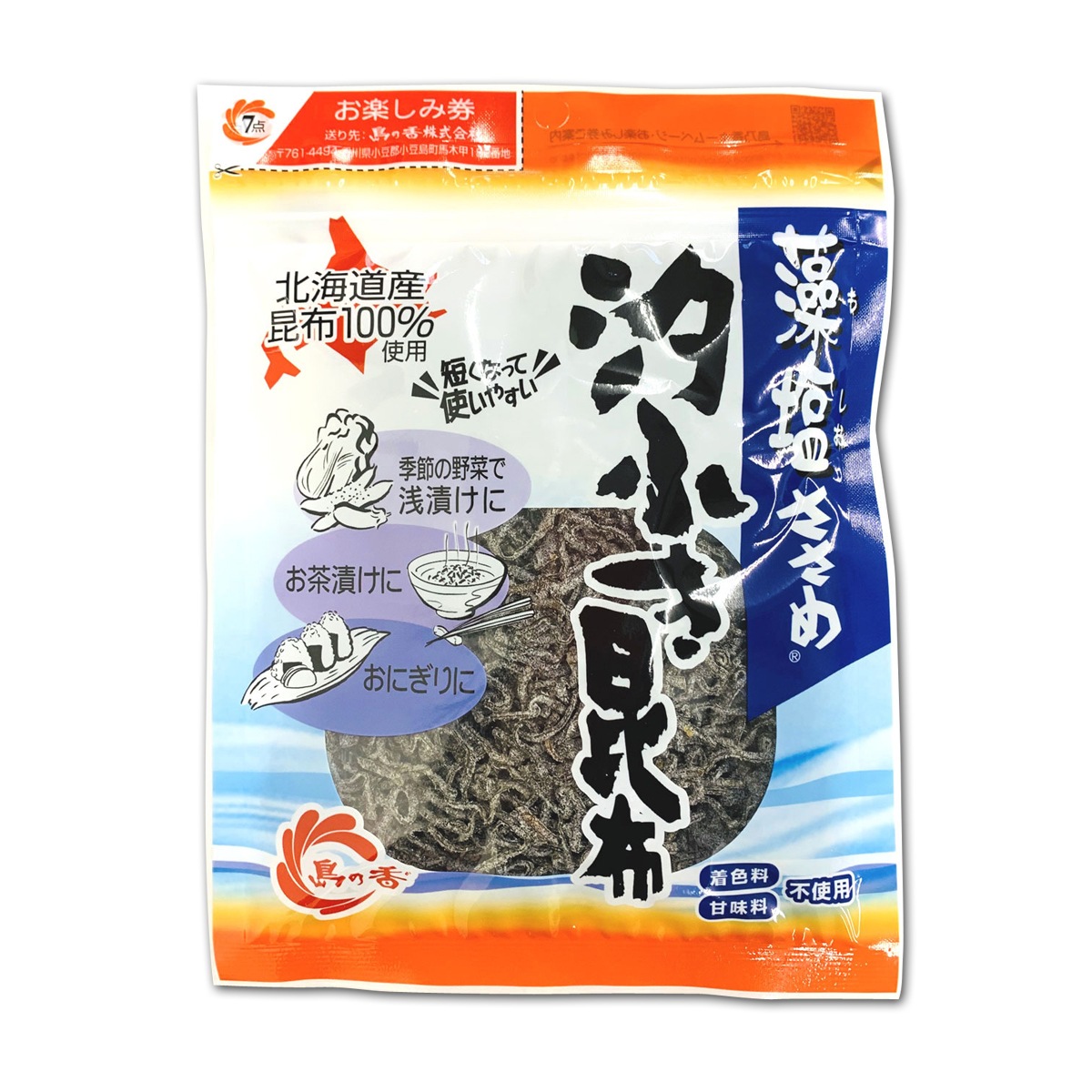 | 原材料名 | 昆布(北海道産)、還元水あめ、醤油、 食塩(藻塩28%)、砂糖、調味料(アミノ酸等)、 酸味料、増粘多糖類、粗製海水塩化マグネシウム、 (原材料の一部に小麦・大豆を含む) |